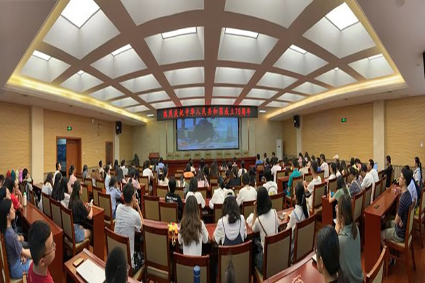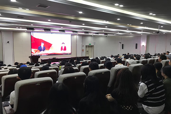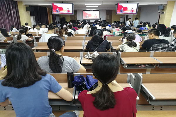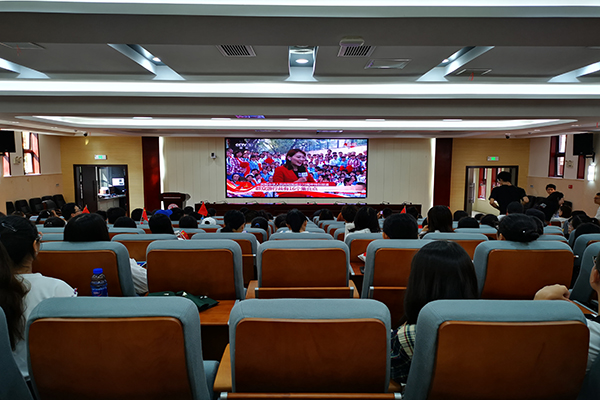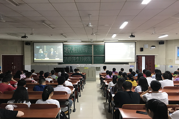 各学院组织师生集中观看庆祝活动。