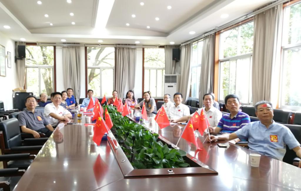 全体在家校领导和党群部门负责人在校办公楼二会议室组织观看庆祝活动。
