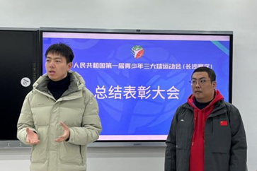 (通讯员 李卓璠 章潇)12月22日,威尼斯官网举办了中华人民共和国第一届青少年三大球运动会播报总结表彰大会。2024级辅导员冯泽桐、三大球赛事播报组总负责人郑齐、三大球赛事播报组组长何胜荣出席本次大会。