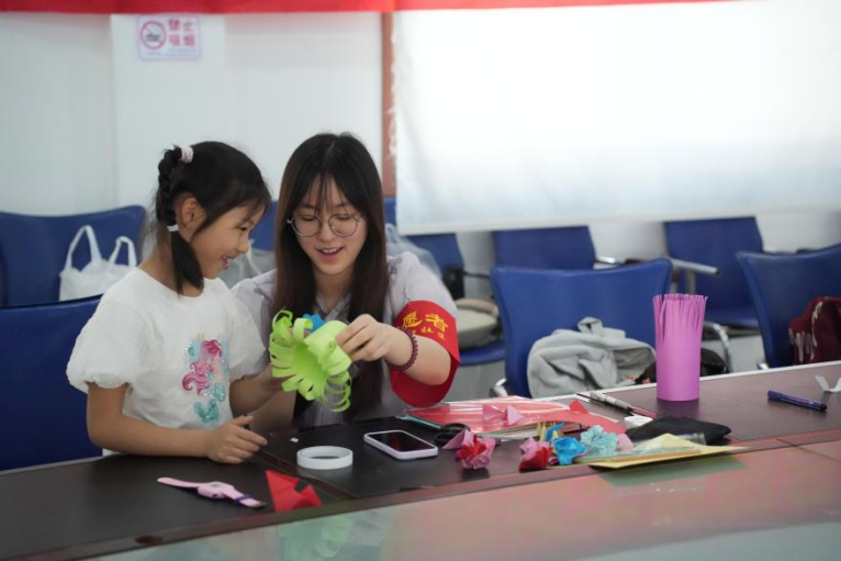 在创意手工环节,志愿者们带领孩子们用彩纸制作花束、用卡纸设计贺卡、用剪纸拼贴花篮。孩子们充分发挥想象力,将满满的爱意融入每一件手工作品中。活动现场欢声笑语,其乐融融。